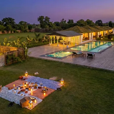 O hotel Stayvista At Risacca - Amer Jaipur, localizado no bairro Amer de Jaipur, a aproximadamente 6 km de Forte de Nahargarh, apresenta vistas para o jardim.